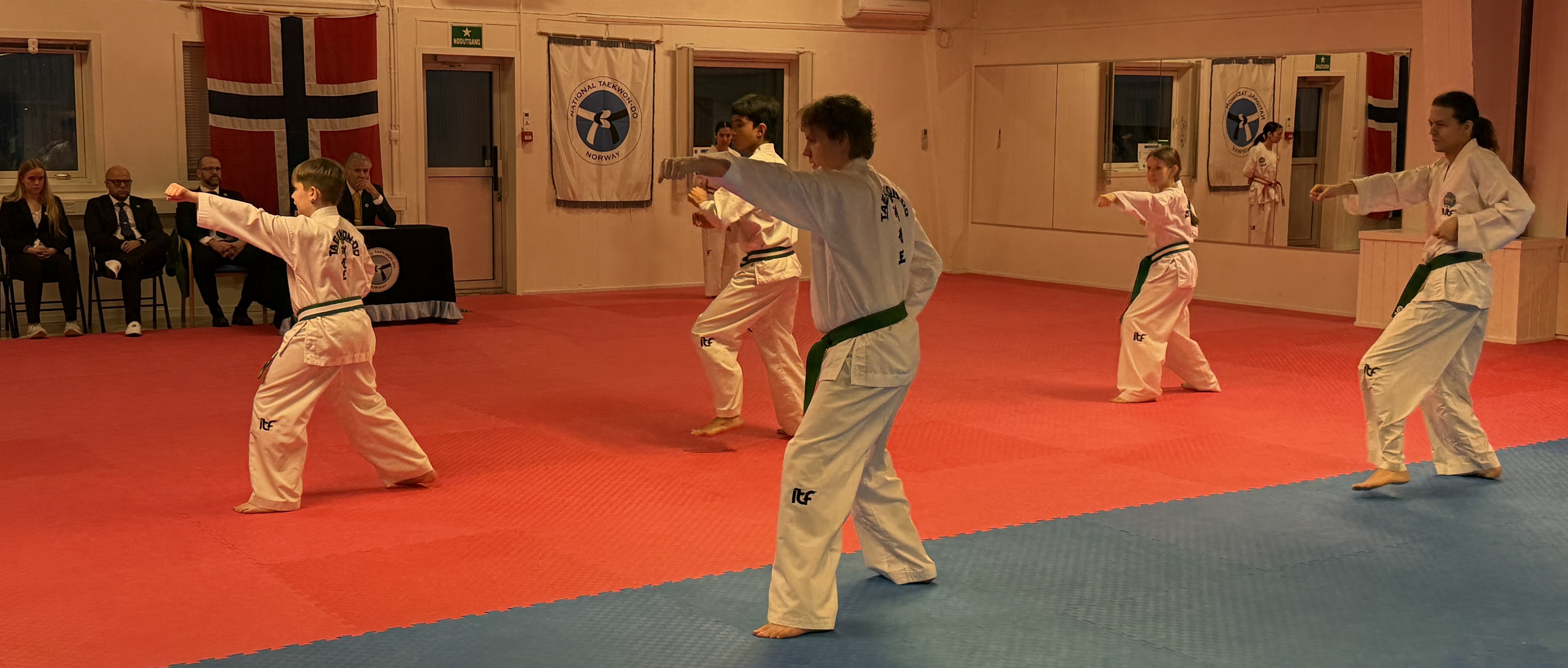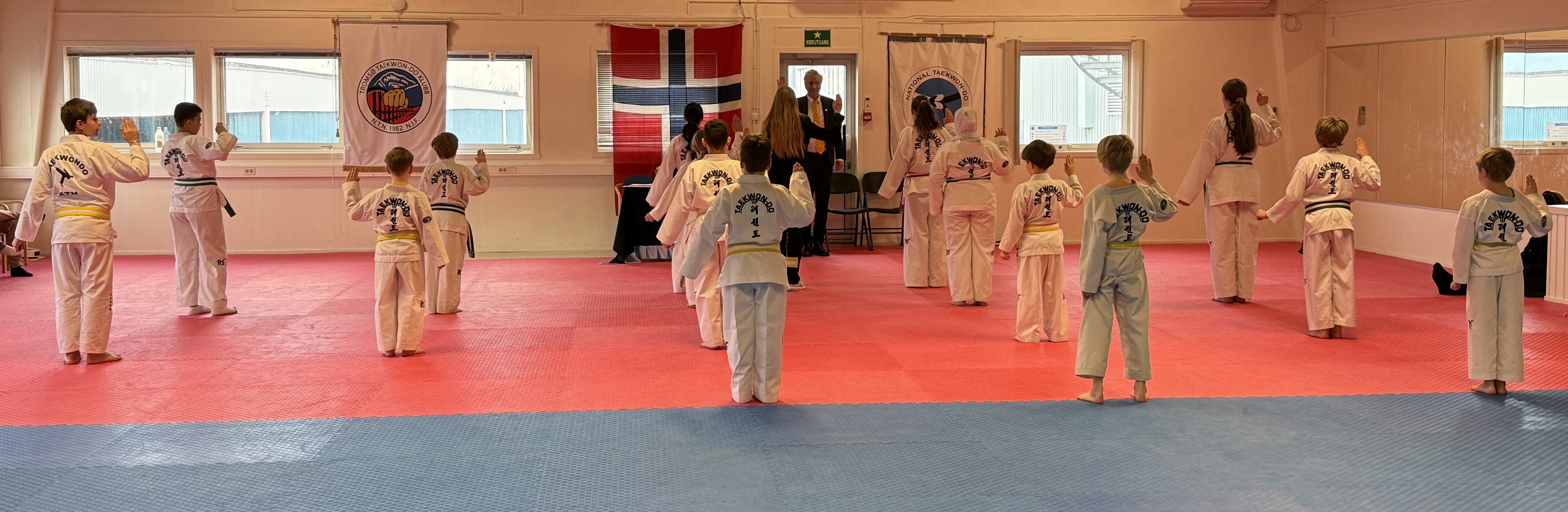 Det var glede i hver nye stripe og hvert belteskifte, stolthet i hvert bukk, og en Taekwon‑Do ånd som minnet oss om hvorfor vi trener: for utvikling, disiplin, fellesskap og glede.